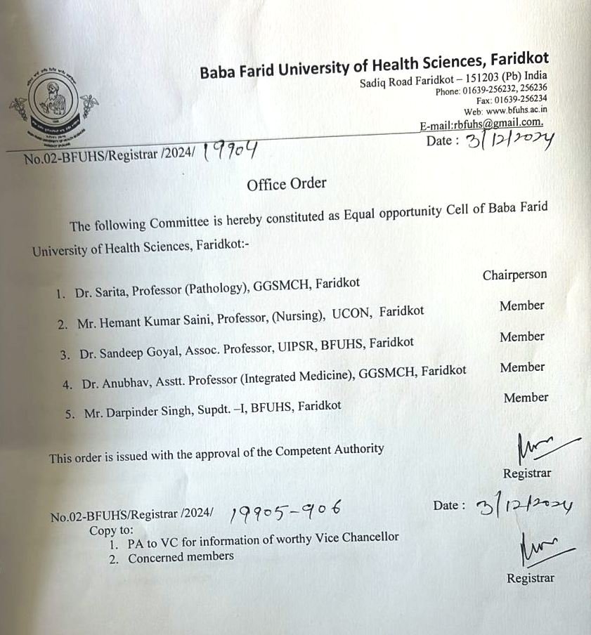 | 5 | Mr. Darpinder Singh | Member | Supdt. -I, BFUHS, Faridkot |